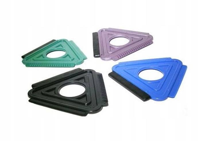 SKROBACZKA DO SZYB TRÓJKĄTNA EAN 5903126324010 skrobaczka do szyb plastikowa Polski producent wyposażona w miękka gumę lekka, kompaktowa dostępne kolory: pomarańczowy, żółty, biały, zielony